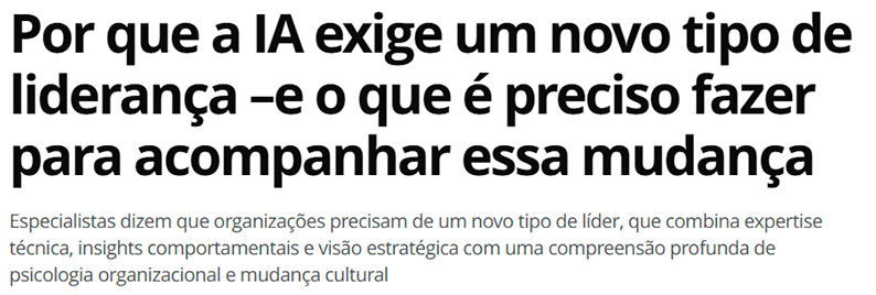 O mundo está em constante transformação, e a Inteligência Artificial já não é mais uma promessa futurista, mas uma realidade que redefine a liderança. Fique por dentro das últimas tendências e insights que reforçam a urgência de líderes dominarem a IA: